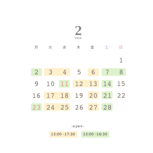 ご来店の際は営業日カレンダーをご参考くださいませ。